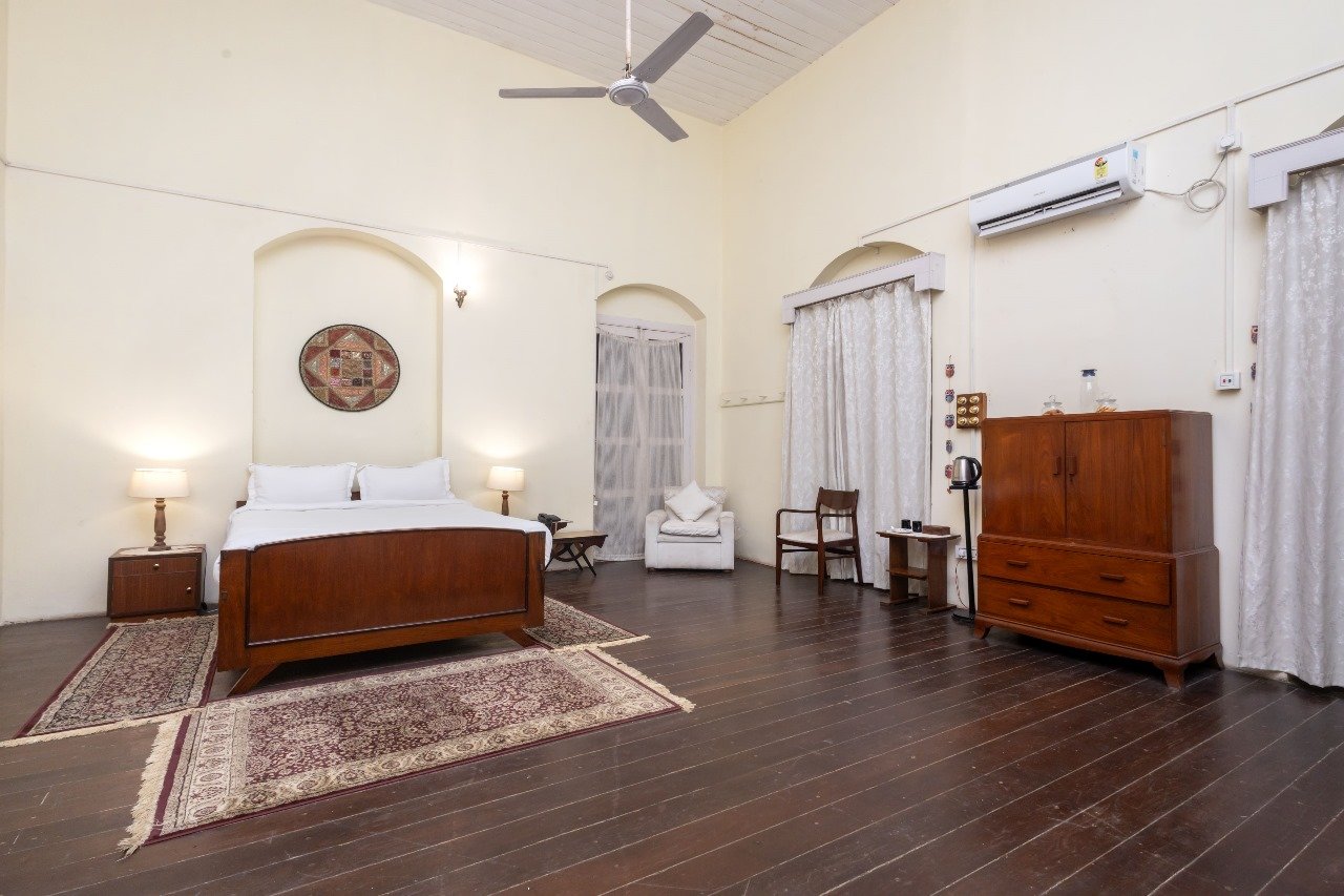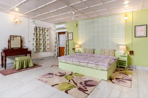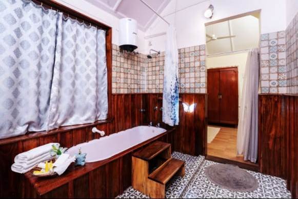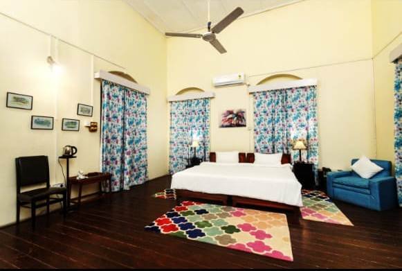 Baradighi The Bungalow offers a boutique colonial experience with rooms that feature classic decor from the British era, including ancient artwork, fireplaces, and stone flooring. The Heritage Rooms, spanning 60 square meters, are equipped with king-sized wooden beds, lavish dressing rooms, and sumptuous bathrooms with connected bathtubs .